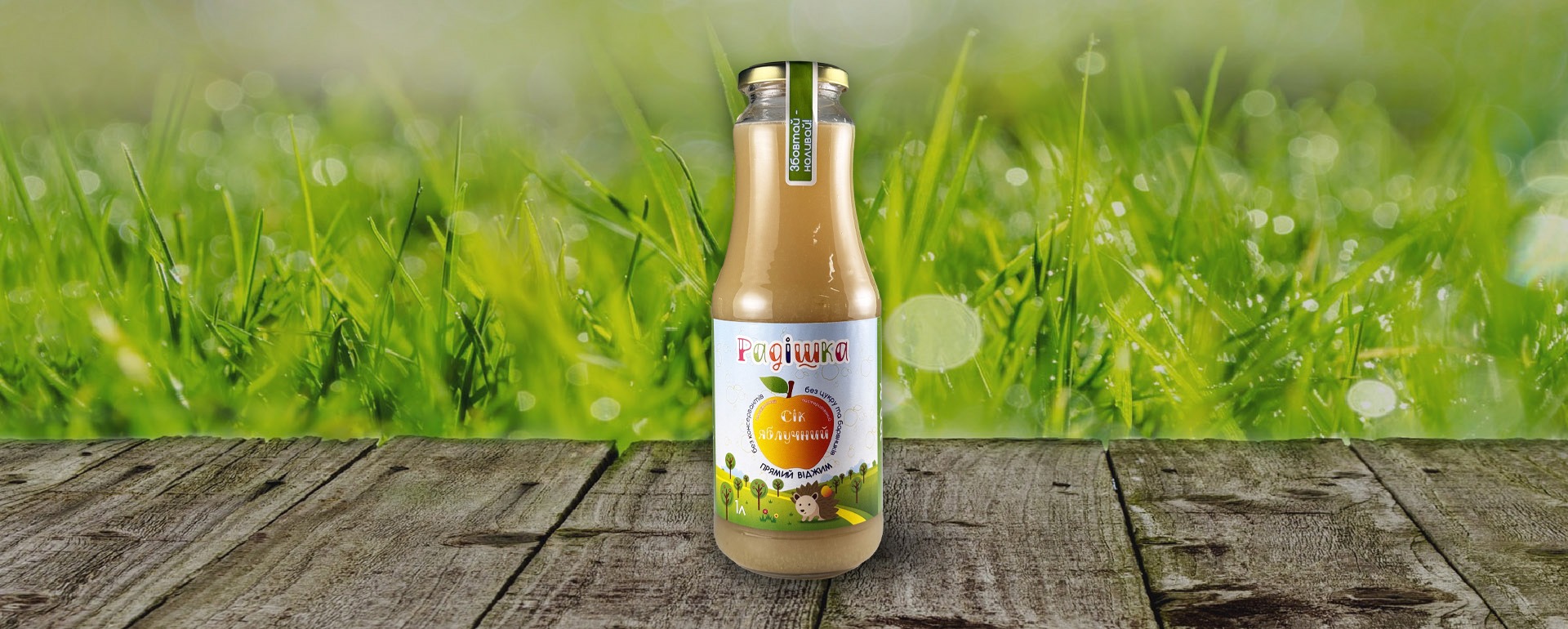 Склад: 100 % сік яблучний прямого віджиму. Без додавання води, цукру, ароматизаторів та консервантів.